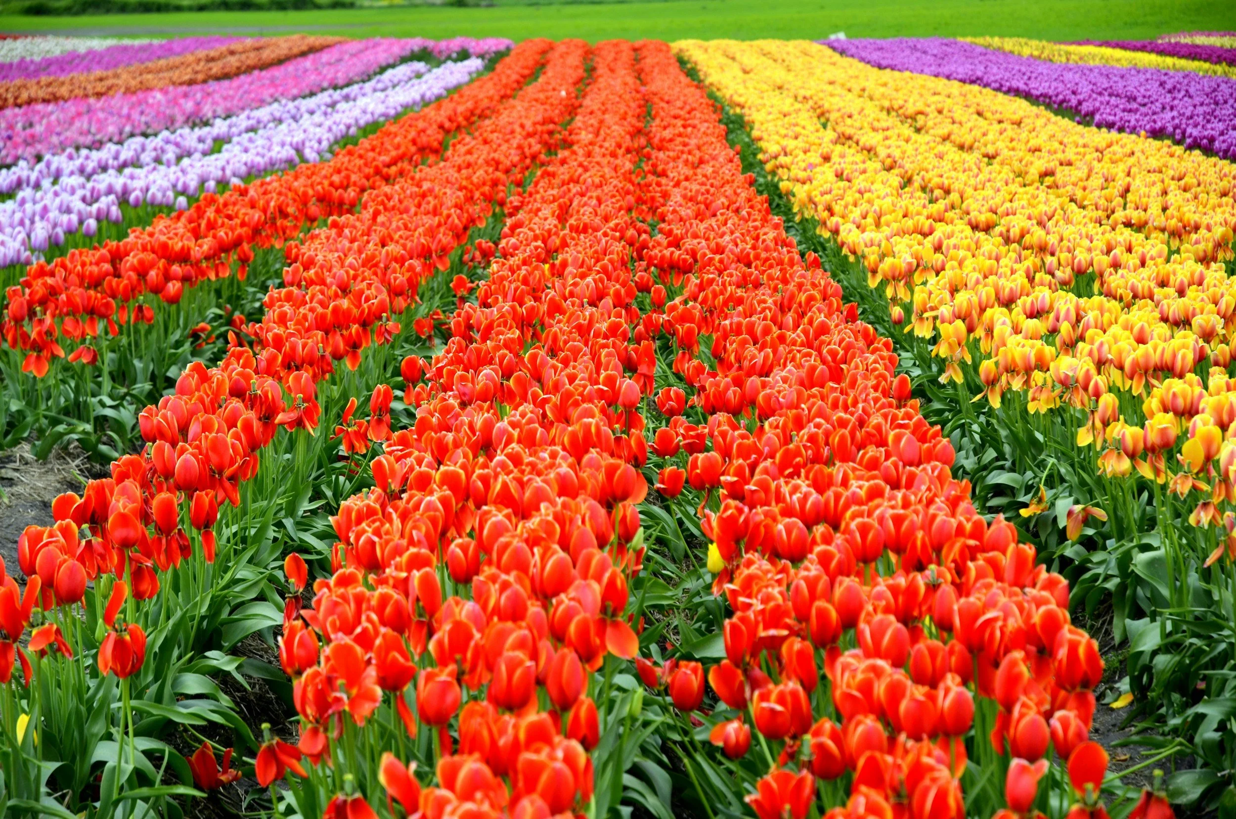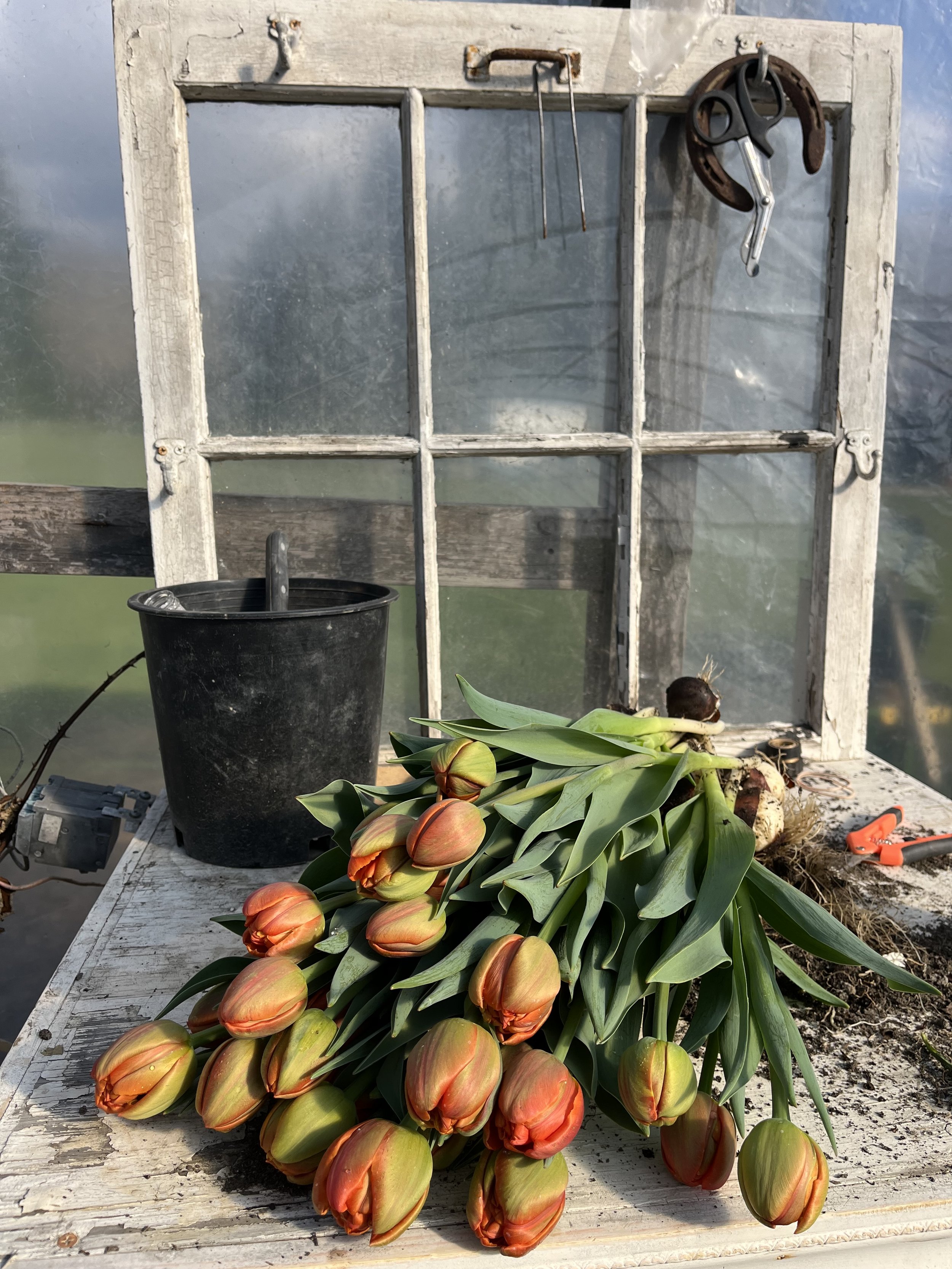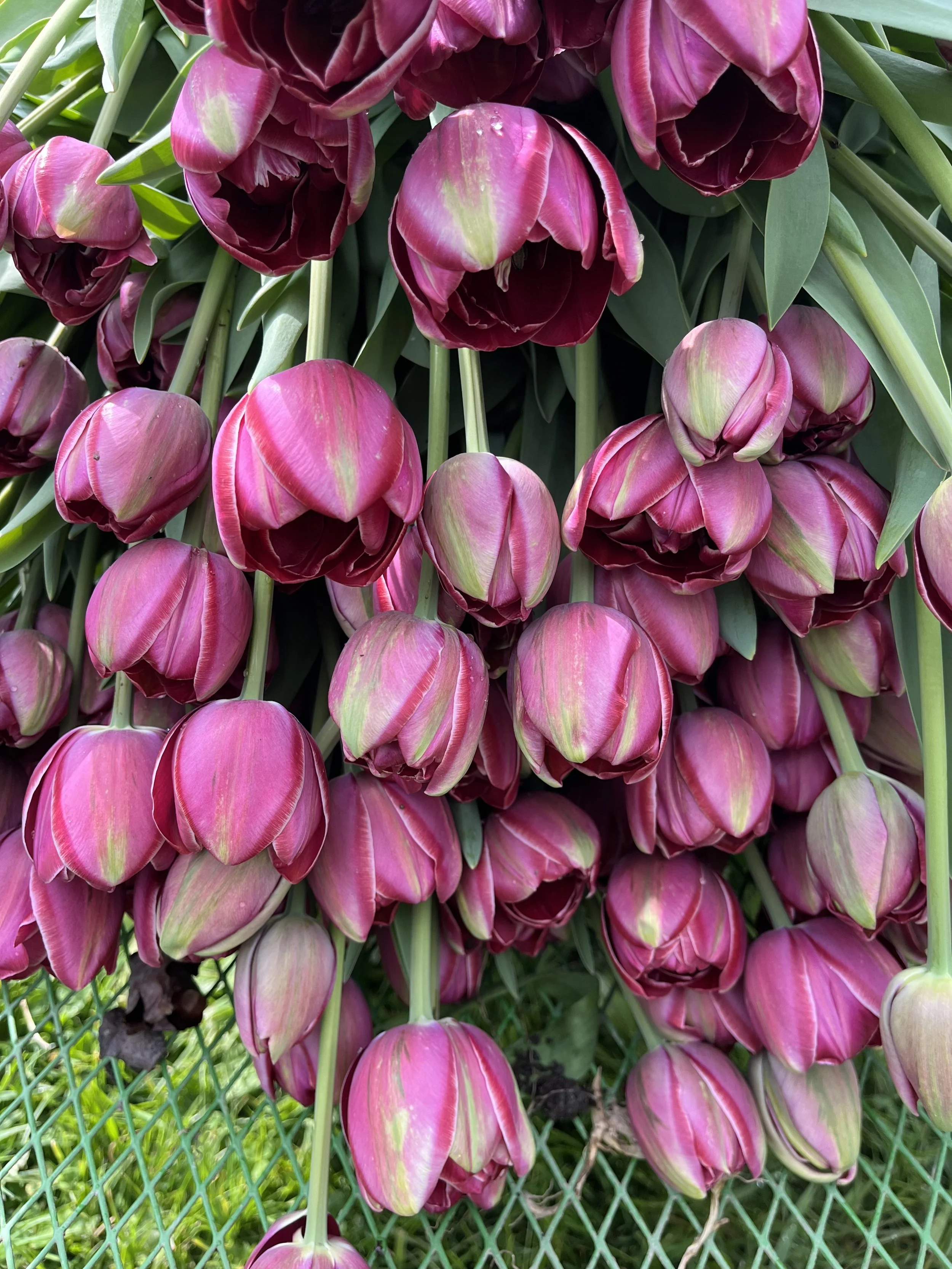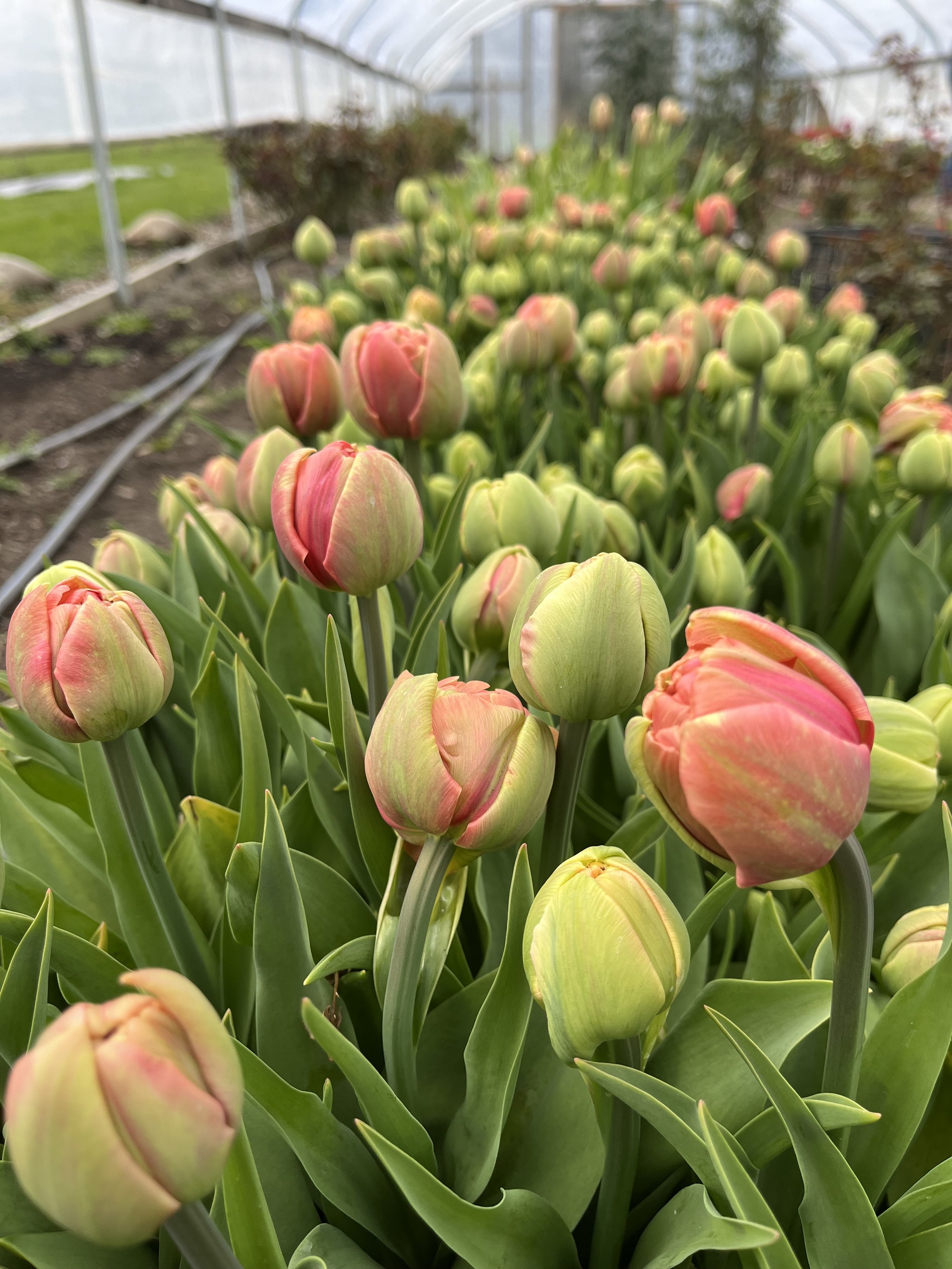 The iconic images of endless tulip fields in full bloom are typically from bulb producers, not cut flower farms. Those fields are grown specifically for bulb production, where the goal is to allow the plant to fully mature and store energy back into the bulb for future seasons. On a cut flower farm, the priority is different—we’re growing for the vase, not for bulb regeneration.